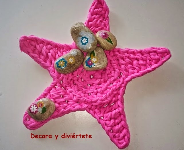 Si os preguntáis donde podéis poner estas piedras decoradas por lo pronto se me ocurren algunos ejemplos como las mesas de vuestra casa tanto las de dentro como las de la terraza o jardín , en la habitación , en el baño , también pueden decorar cenas de verano junto a unas bonitas velas ....