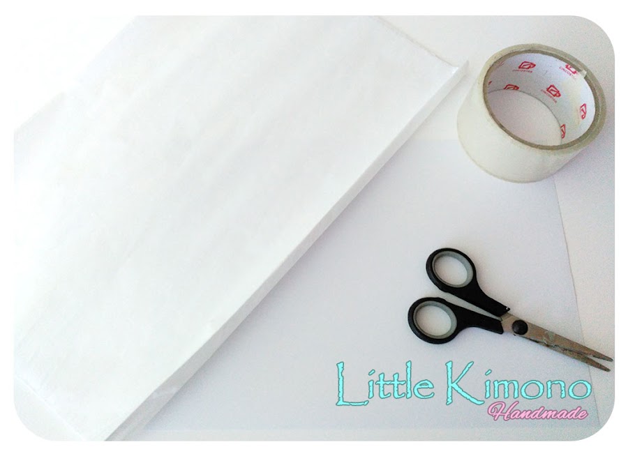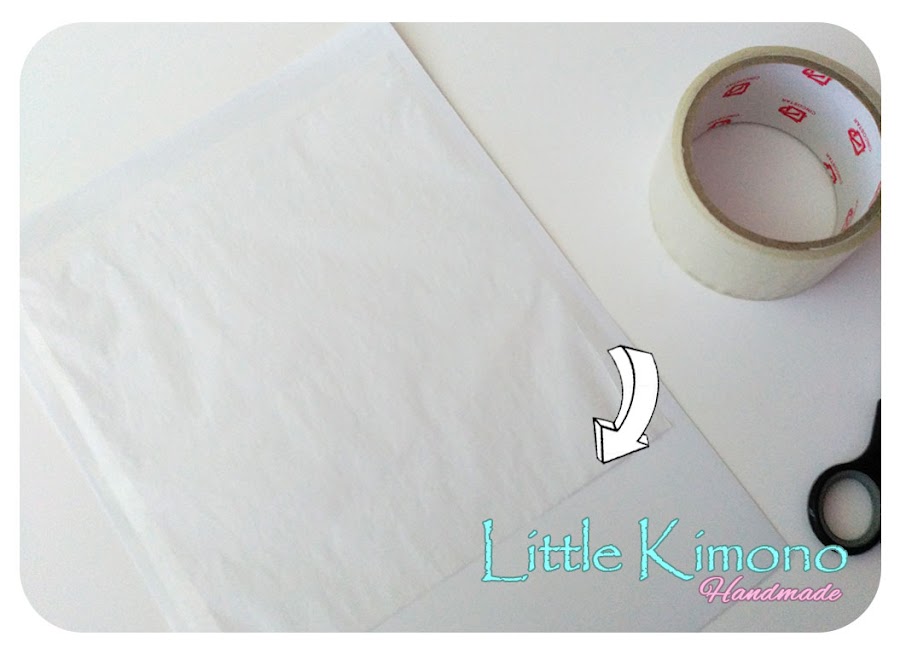 1. Primero colocamos un trozo de papel seda sobre el folio y lo pegamos con cinta adhesiva, esto es porque lo pasaremos por la impresora y es para darle más resistencia.