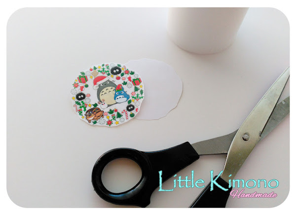3. Con nuestro diseño impreso lo recortamos y separamos del folio, nos quedamos sólo con la imagen impresa en el papel seda y la colocamos sobre la vela...