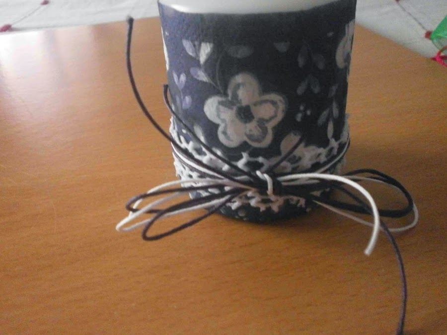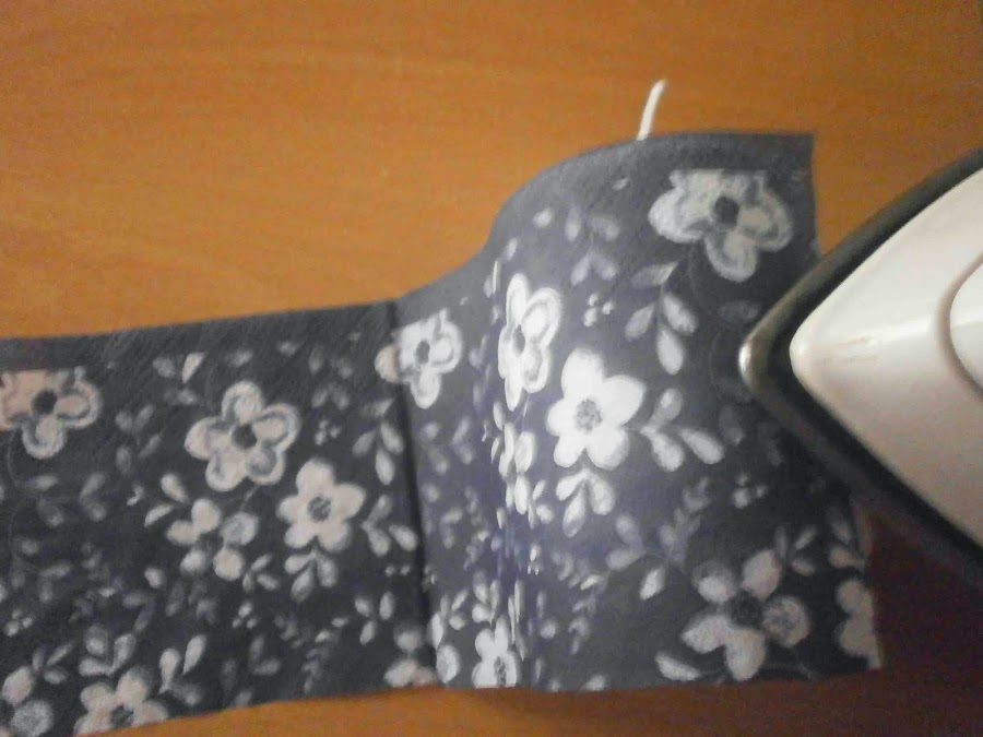 Primero medí el contorno de la vela y el largo, con la vela dentro de la servilleta y corté.