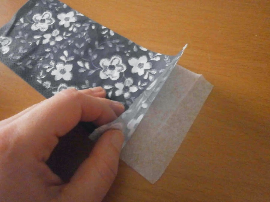 Una vez cortada la servilleta a la medida de la vela, separé la capa de papel que no me sirve.