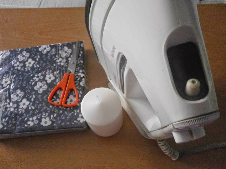 Materiales: Una servilleta de papel, tijeras, una vela y una plancha.