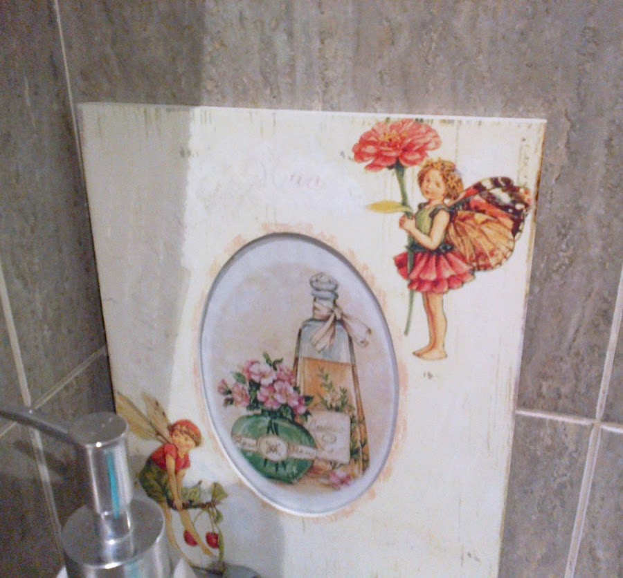 En este caso he utilizado un lienzo de tela, siempre tengo alguno en casa para ponerme a pintar cuando me apetece, pero se puede utilizar perfectamente una tablita fina (unos 5mm sería suficiente)de esas que venden por cuatro duros en Leroy. (Yo es que soy fan de Leroy Merlin). Bueno, pues la base es esta y después aplicaremos la técnica del DECOUPAGE, se elige una bonita imagen de baño (Como digo infinidad de veces, me encantan las de estilo Vintage).