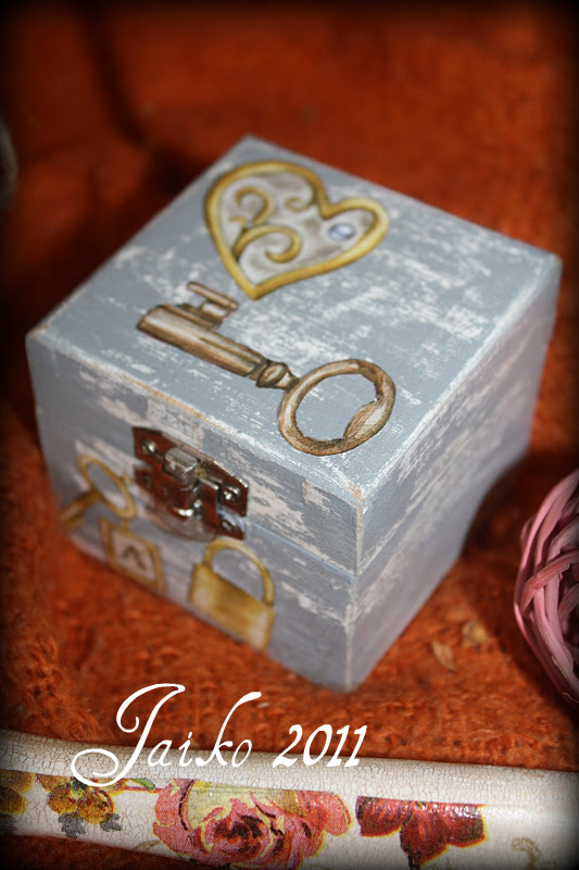 Y esta pequeña caja, que fue el envoltorio de un detalle que hice cuando se sacó el carné de conducir, era complicado para envolver en papel, y decidí que en caja estaria mejor, así que tunee una.