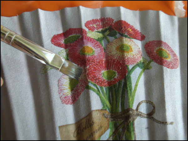 Cuando peguéis la servilleta( ya sabéis que sólo la capa impresa), primero, os aconsejo que la presionéis con los dedos ligeramente humedecidos en agua.