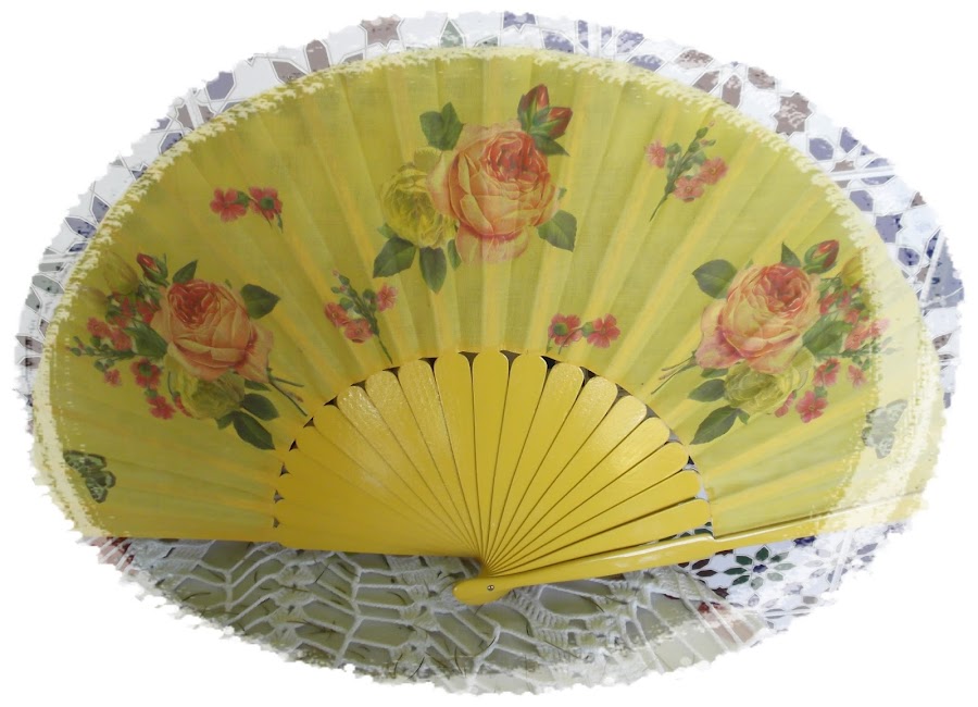 Pero para abanicos los que utiliza mi madre. A ella le gustan los abanicos llamados pericones. Son abanicos, de tela, que suelen ser lisos,con varillas de madera, de un tamaño mas grande de lo normal ( 27-31cm). Son los que se suelen utilizar en el baile flamenco.