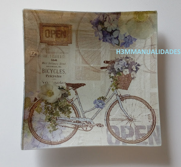 Y con esta, que está decorada también con decoupage, pero con papel de arroz, me voy a visitar a Jen, en su Reto de bicicletas.