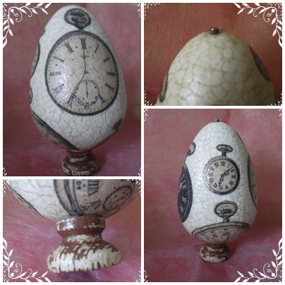 En agradecimiento, hoy le he regalado este huevo adornado con decoupage y craquelado.