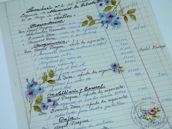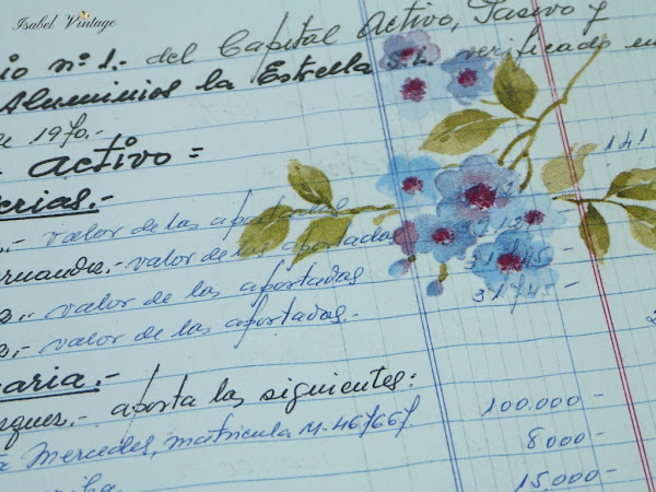 Decoupage con servilleta realizada sobre página de un antiguo libro de balances