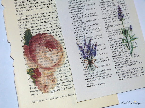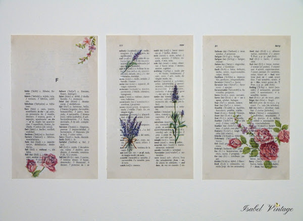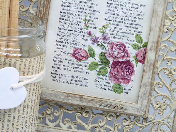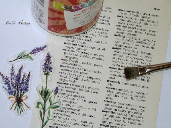 Trabajando el decoupage sobre hojas de libros en clase, una de mis alumnas trajo también páginas de diccionario, que quedan espectaculares con esta técnica.