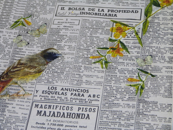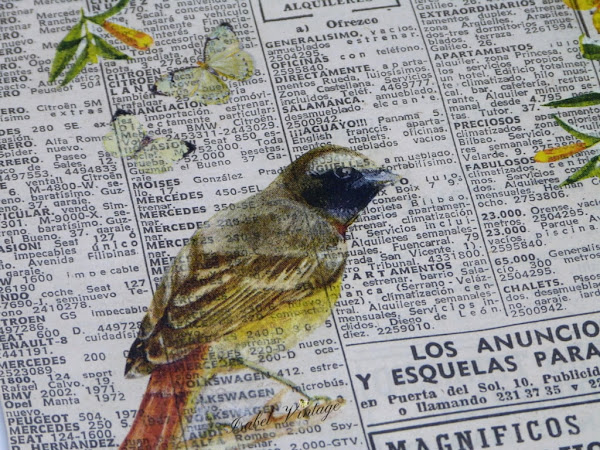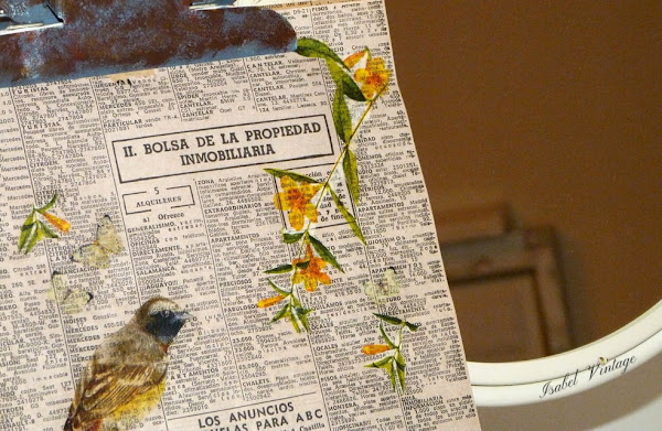 Decoupage con servilleta realizada sobre página de un periódico antiguo
