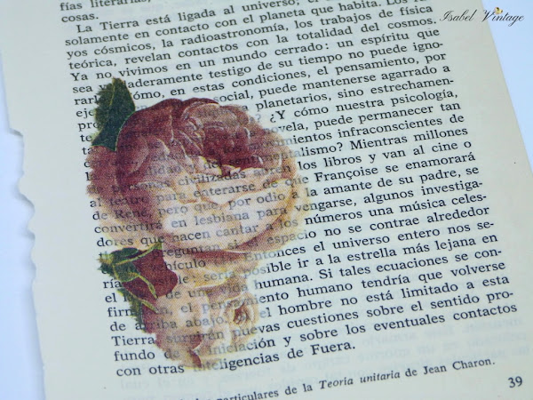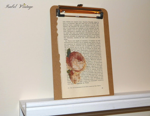 Decoupage con servilleta realizada sobre página de un libro antiguo