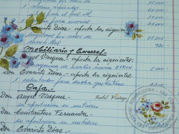 Ella trajo también estas impresionantes páginas manuscritas de un antiguo libro de balances, con esa impecable caligrafía del contable:
