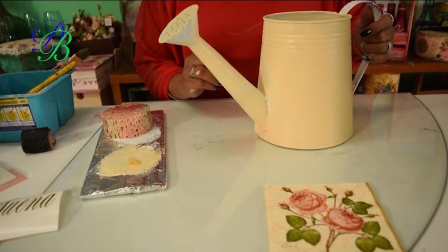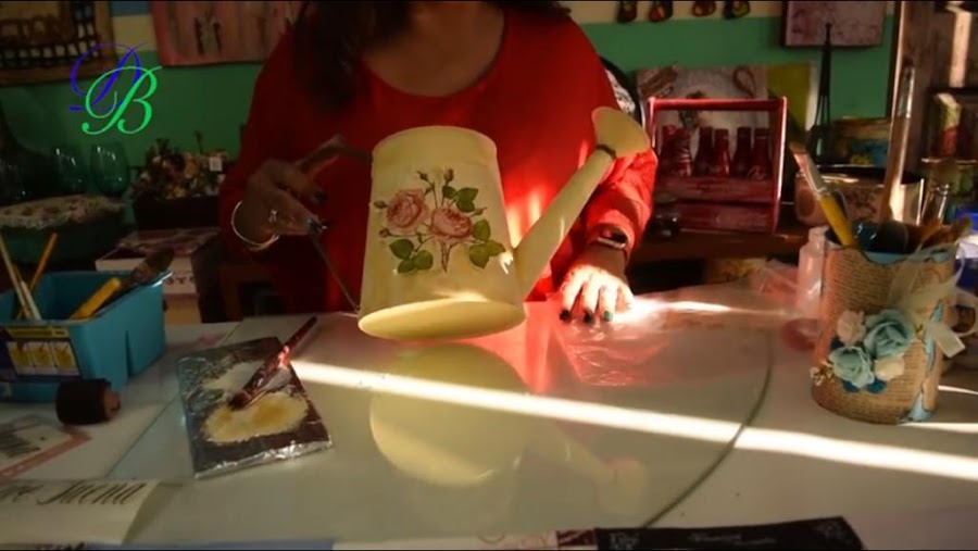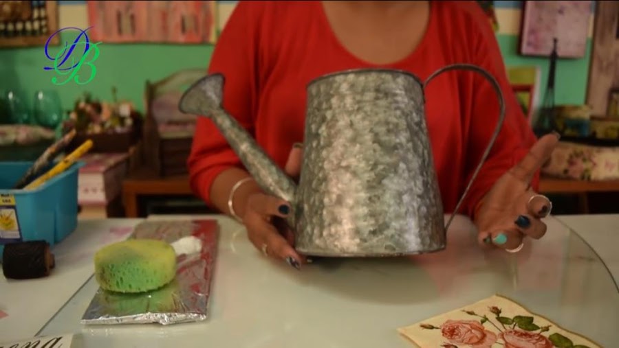 Seguimos Pintando sobre Metal, una superficie que también le podemos realizar la Técnica del Decoupage. Y esta vez te lo haremos sobre una regadera de Metal, dándole cambio y creando un hermoso adorno para un rinconcito de la casa.