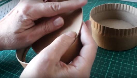 Para favorecer el cerrado de la caja vamos a juntar un poco los pliegues que tiene la parte de abajo, de esta manera achicamos su perímetro para que la tapa entre mejo.
