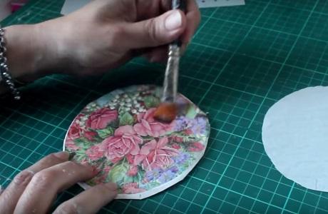 Con pegamento blanco pegamos al aro el círculo que tiene hecho el decoupage.