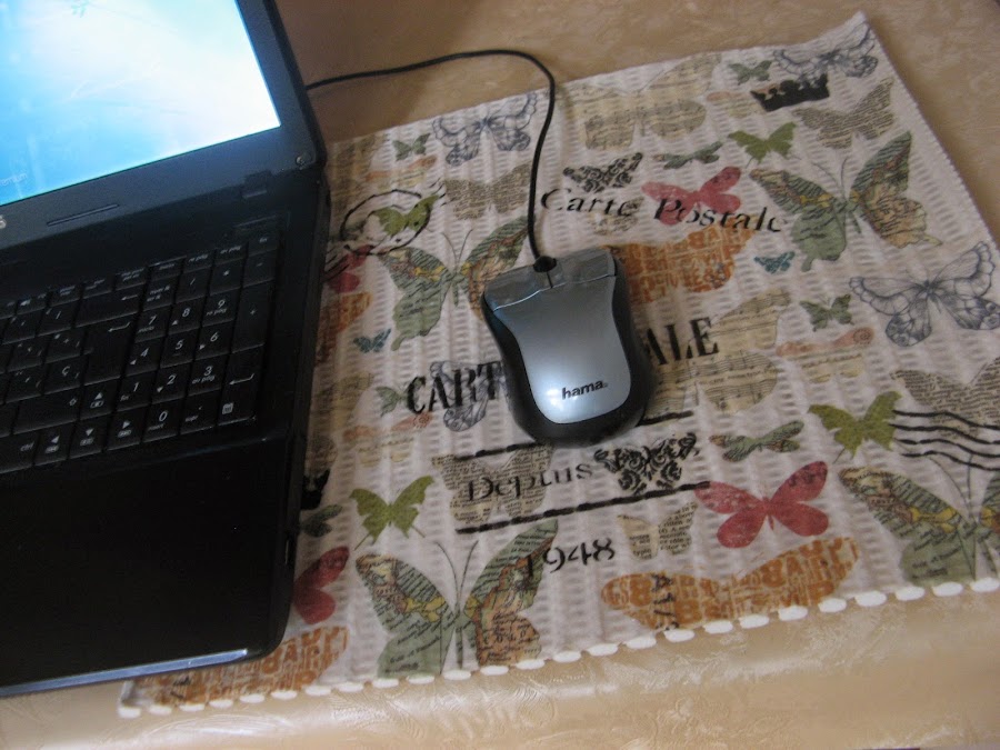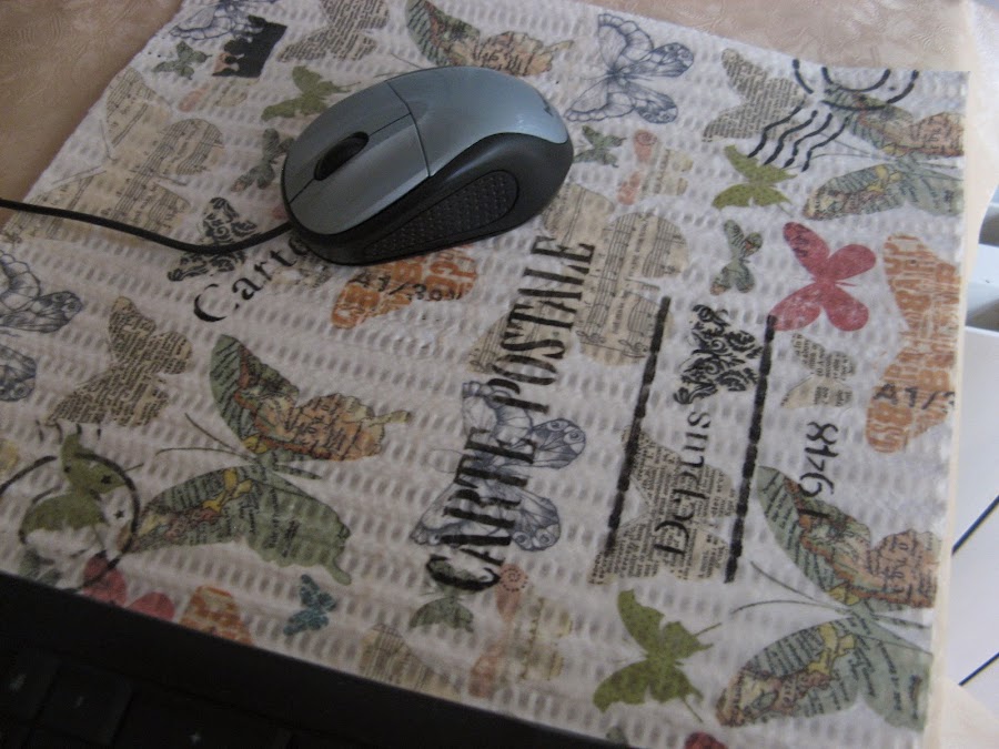 ¿Y si probaba a hacer decoupage y estarcido sobre este material?? ¿Y si lo convertía en alfombrilla para el ordenador??