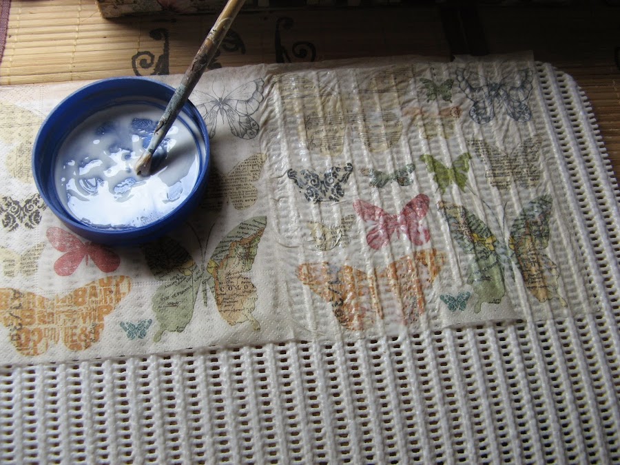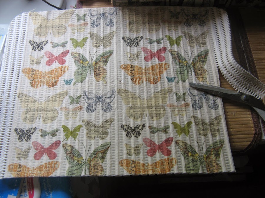 la servi no cubría la superficie entera asi que las dos tiras sin decoupage las corté