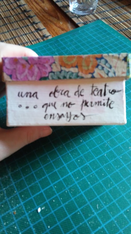 He hecho esta cajita tan molona, jajaja no necesito abuela!! con una frase que me parece genial, y un poquito de lettering, era una cajita de craft y con estas floretas creo que ha quedado románticona