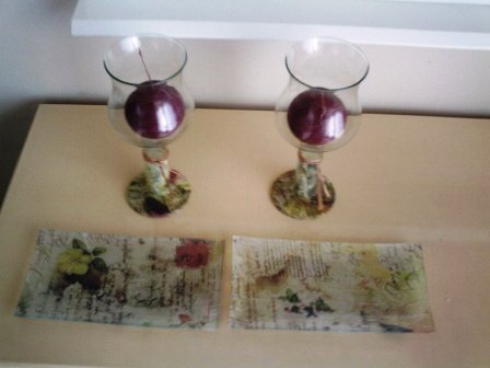 Las bandejas me las regalaron de cristal transparente y como me había sobrado papel de arroz...pues ya está el juego.