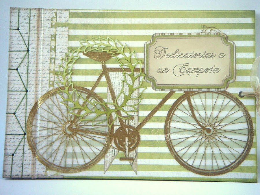 Es casi obvio que, cuando se trata de un ciclista, no puede faltar una buena bicicleta, y ese fue mi punto principal en esta decoración, una gran bici, que ocupa casi toda la portada.