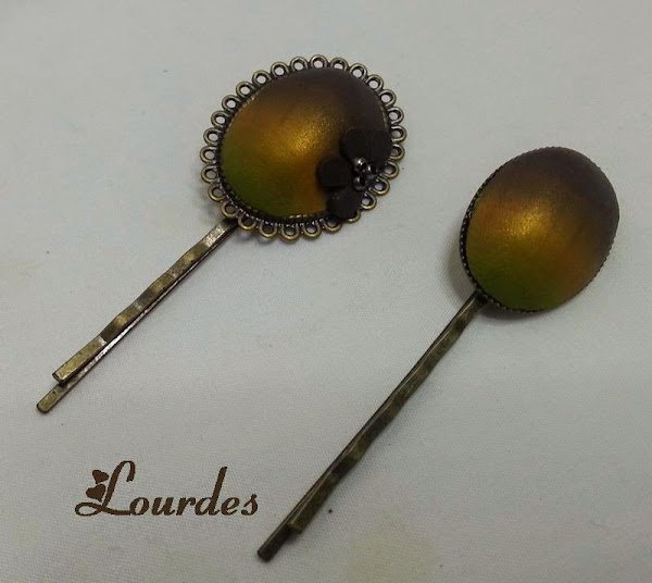 Broches de 4 centímetros de diámetro barnizados y con detalles en arcilla polimérica