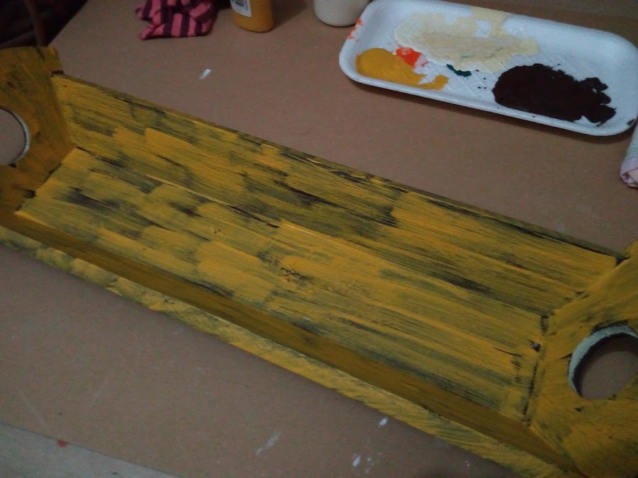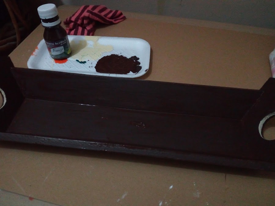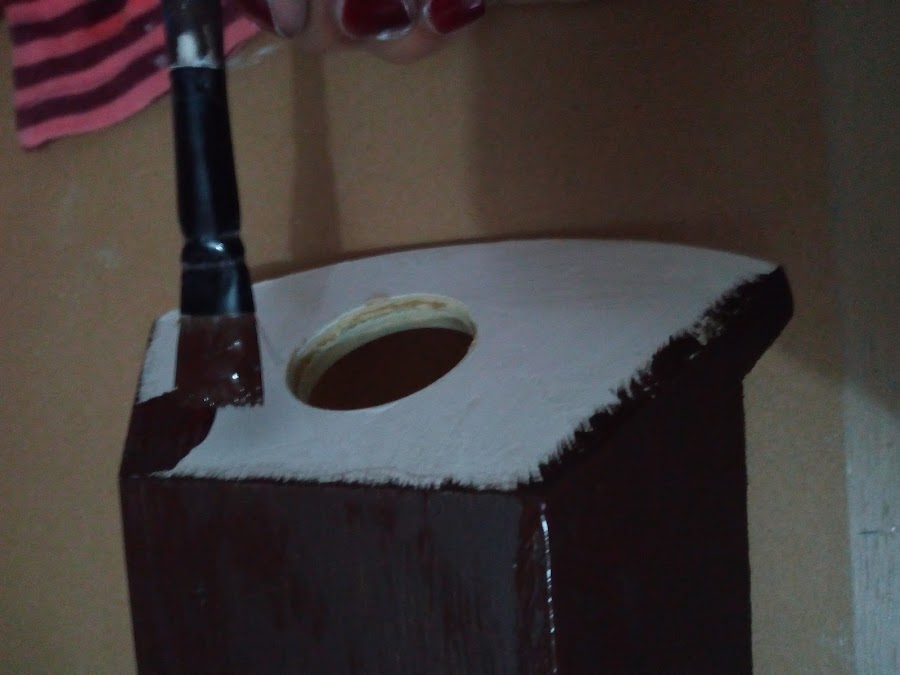 La segunda capa de pintura elegí marrón oscuro, decidí utilizar colores de estilo rustico.