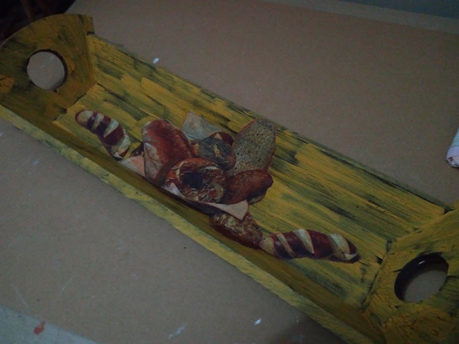 Bien pues aquí les cuento el paso a paso de como he realizado esta panera. Hace tiempo que no aplico la técnica del decoupage y me pareció que le venia genial a la panera.