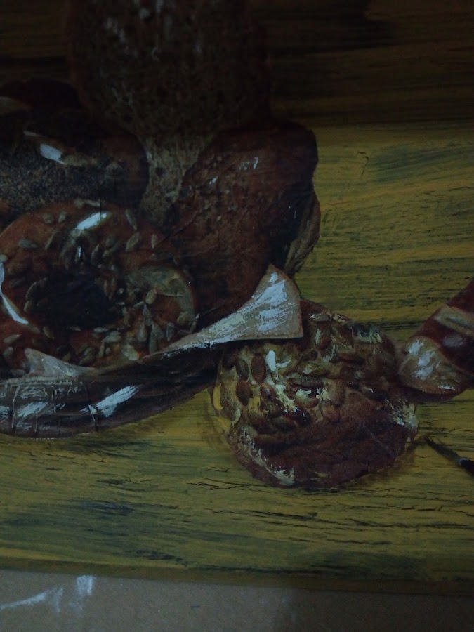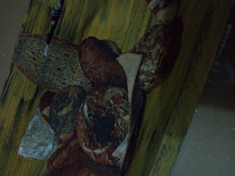 Sobre este amarillo ocre coloque la servilleta, recortada la imagen de diferentes panes para crear la composición