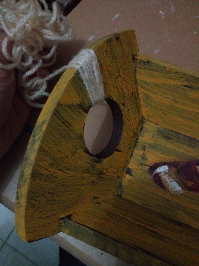 Y como detalle final para lograr un poco mas de rustico, amarré un poco de cuerda en las asas para sujetar la panera .