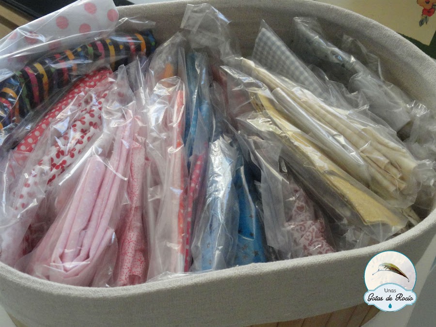 El sistema de las bolsas me ha resultado comodísimo y al fin tengo juntos los trozos minúsculos de cada tela con otros grandes que me van sobrando de manera irregular con cada trabajo. Además, mantener el orden es fácil y cómodo, que es lo que me suele pasar a mí, que me desordeno enseguida.