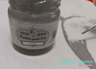 Ahora con la pintura para tela en mi caso de Amelie, dibujamos los contornos con un pincel fino y luego rellenamos las zonas por colores.