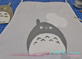 Por supuesto si se trataba de darle un toque personal a un delantal de Llittle Kimono... no podía faltar un Totoro pero no un Totoro cualquiera sino un Totoro chef!^^