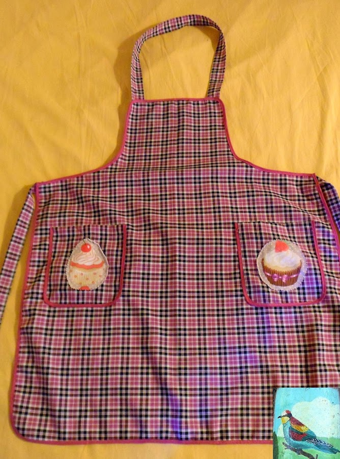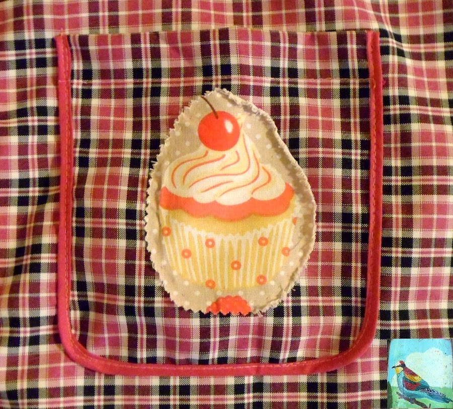 Este delantal es el único que he comprado ya hecho, es de los sencillitos y económicos, pero lo encontraba demasiado sobrio, así que como tenía unos parches de tela de cupcakes, me parecieron ideales para colocarlos en los bolsillos del delantal y darle un toque más personal.