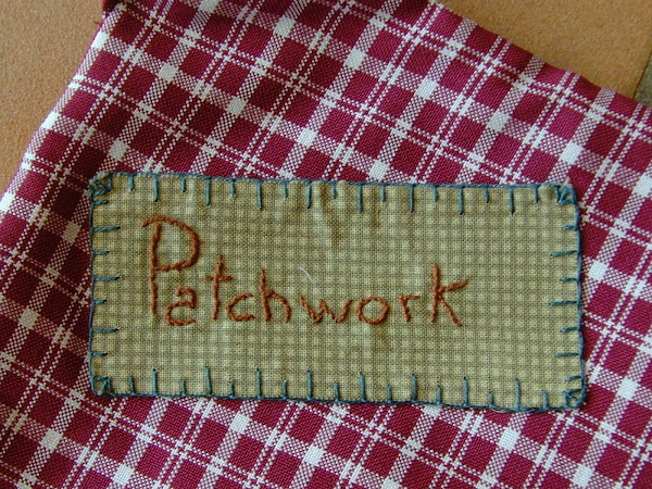No conforme con eso le añadí unos cartelitos bordados con punto atrás con todas las labores que me gusta hacer, como también son de cuadritos están cosidas al delantal con más punto de festón le dan un aire un poco más rústico y más country, justo como me gusta.