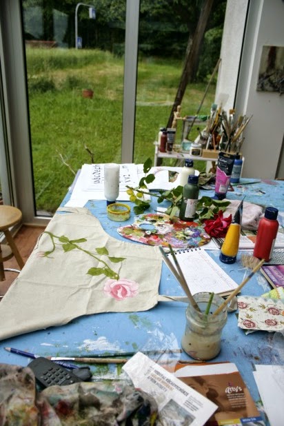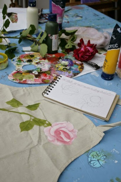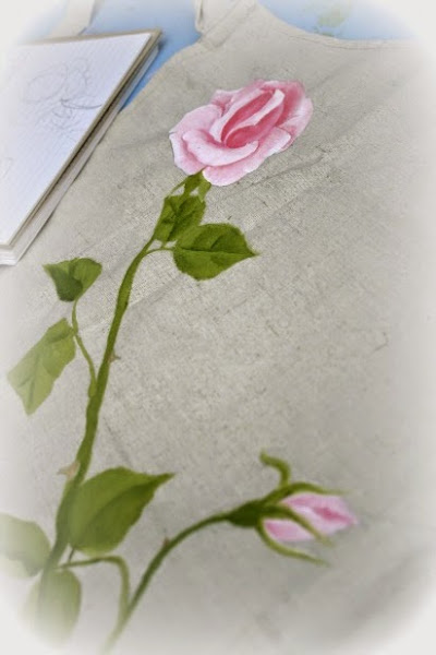Hice bocetos, tomé una rosa de mi jardín, hice estudio de colores, de sombras... y ya lista, me lancé! No debía ser completamente realista pero se debia ver que era rosa...