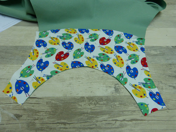 El primero, era en tonos rosas y este es un poco mas colorista, ya que combina un tejido verde salvia con un tejido de popelín de algodón con un estampado muy "ad hoc" muy colorista.