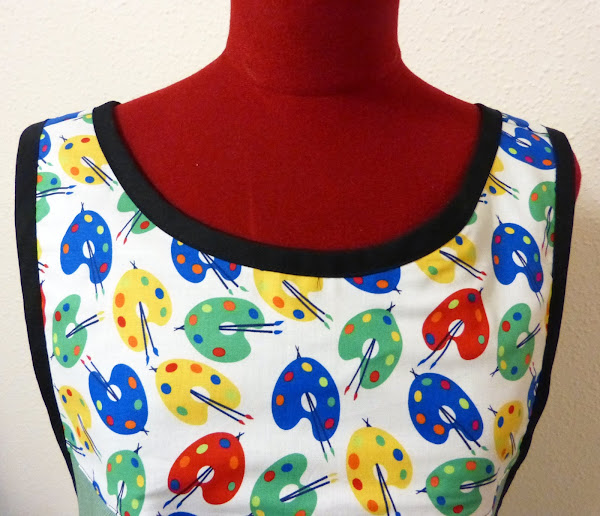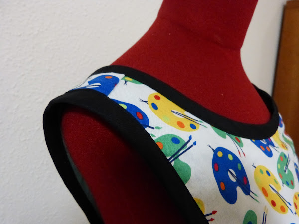 He rematado todo el contorno del delantal con una cinta al biés de color negro.