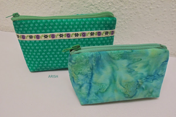 -con unos pequeños trocitos de tela y un resto de cinta bordada han salido éstos dos neceseres pequeñitos para llevar en el bolso: