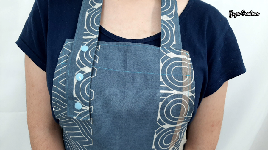 Poner este tipo de broche es completamente opcional, en su lugar puedes usar velcro o cierre mágico que sería la opción más fácil o también puedes ponerle un botón y abrir un ojal en el delantal.