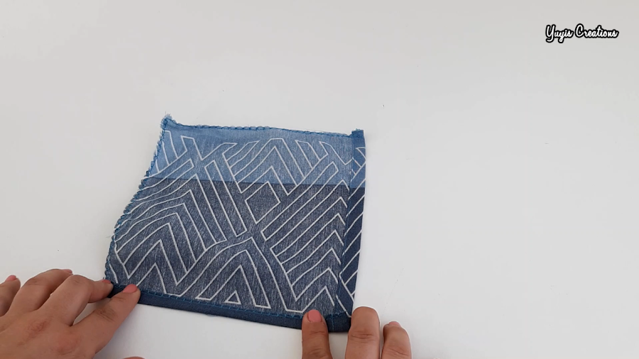 Con la pieza del bolsillo hacemos lo mismo, pero en la parte de arriba, por donde abrirá el bolsillo, doblaremos dos veces a 1 cm y cosemos con puntada recta. A los 3 lados restantes le pasaremos un sobrehilado, luego lo doblaremos una vez a 1 cm, lo hilvanamos y reservamos: