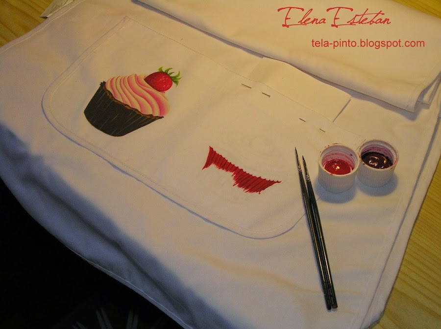 Hace un año y medio hicimos unos amigas y yo un curso de Cup Cake y otros de tartas …en el cual lo pasamos genial. Jenny una de mis amigas le encanta y sigue haciendo Cup Cake para baby shover, cumpleaños, etc…Ella vio mi blog y me pidió que le decorará un delantar con cup cake. Tenia una tela decorado con Cup Cake y esto es lo que hice. Cosas que necesitamos para decorar el delantal c ...