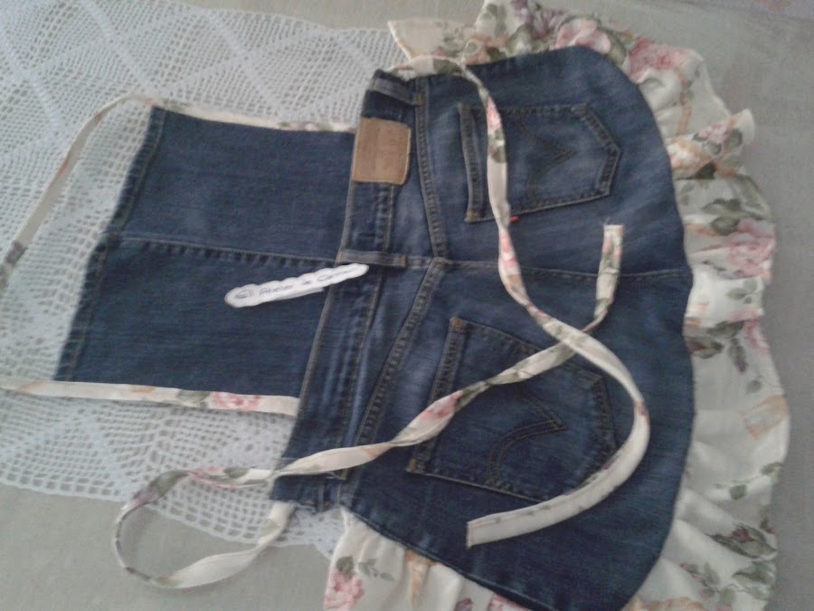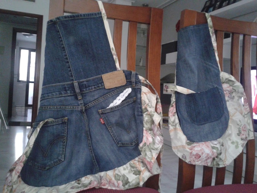 Desde que vi el resultado en Pinterest, estaba deseando tener tiempo para hacer este delantal con mis viejos vaqueros, que me daba pena deshacerme de ellos