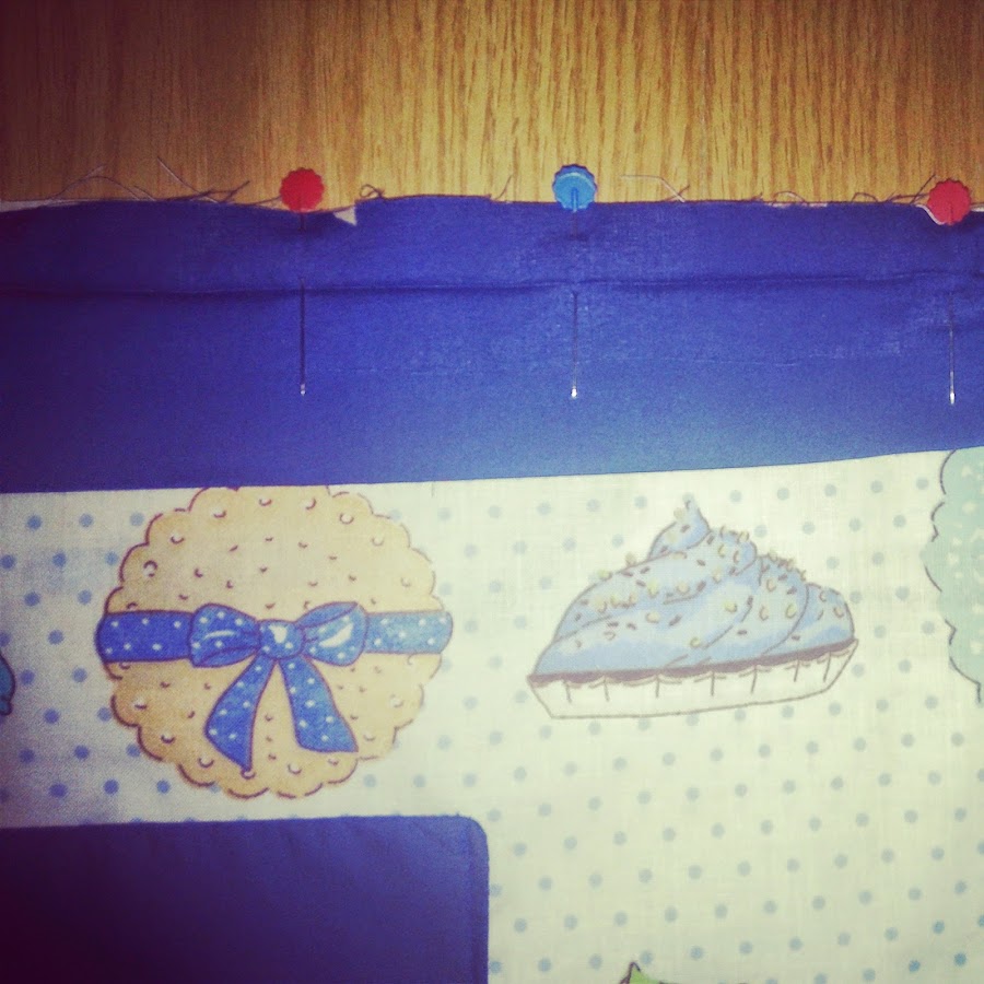 Ahora superponlo en la tela que quieras que sea la delantera del delantal colocándolo lo más recto posible y con la abertura hacia abajo para que cuando cosas la costura quede bien cosido. Cóselo en forma de U ¡¡no lo cosas entero o te quedarás sin bolsillo!! ese hueco que hemos dejado sin coser al pasar esta costura quedará bien cerrado y no se notará nada!