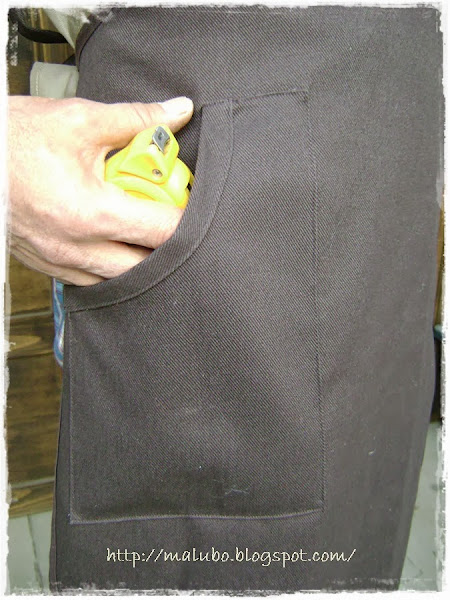 Son un rediseño de los anteriores, les hice algunos cambios en los bolsillos según las necesidades de mi marido. En el bosillo superior guarda sus lápices y una pequeña escala.