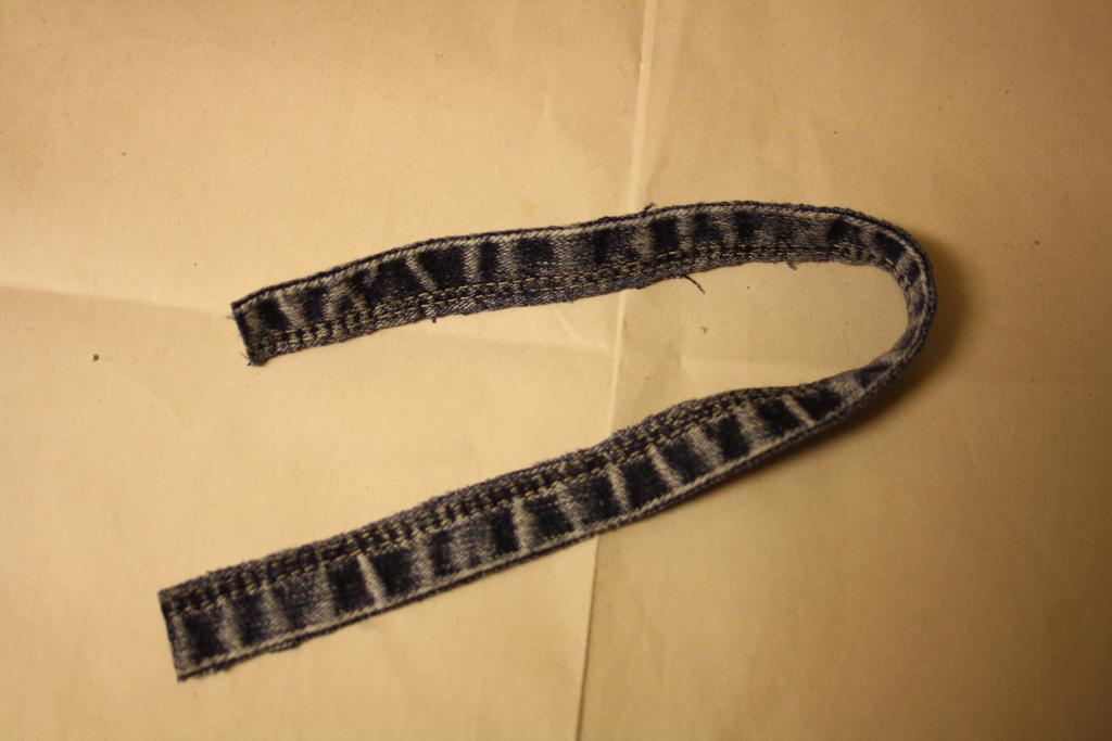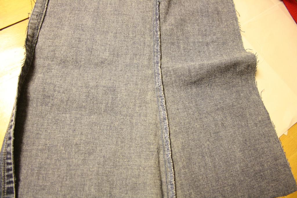 Cortar a lo largo del en la costura, abrir una pierna de un par de jeans.