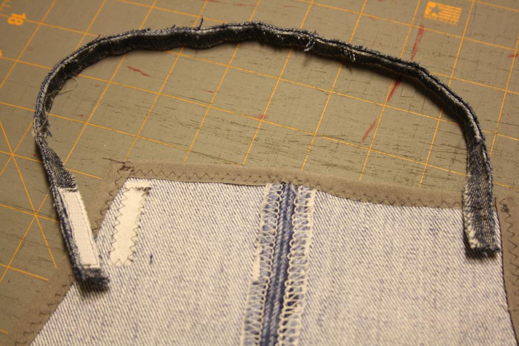 Recortamos las costuras dobles para utilizarlas como lazada para atarnos el delantal, una para la cintura y otra para el cuello