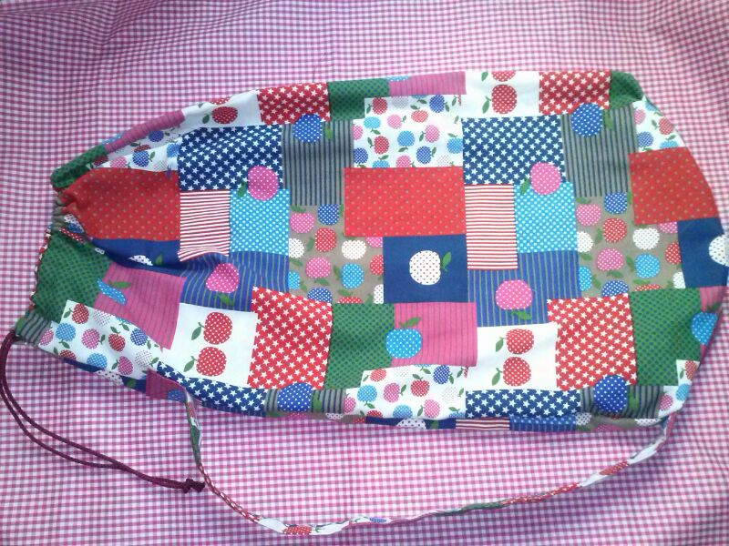 Y para terminar, una bolsa para transportar la colchoneta de gimnasia o yoga. Se cierra con un cordón y lleva un asa para colgar en el hombro, la tela es loneta con un estampado muy alegre, no creeis?