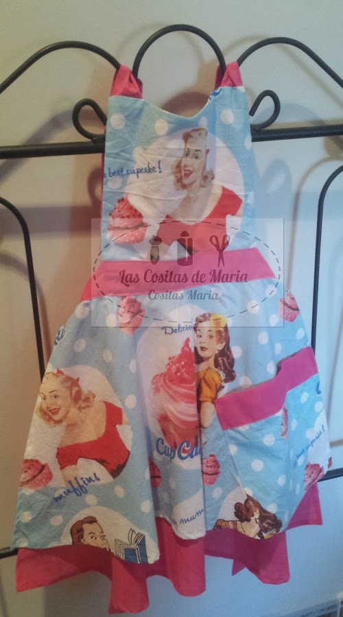 Delantal de estilo vintage, con bolsillo, para una chica muy vintage, a cocinarr