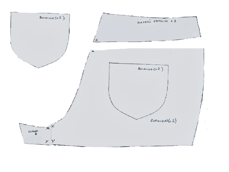 Consta de tres piezas: Espalda, canesú y bolsillo.